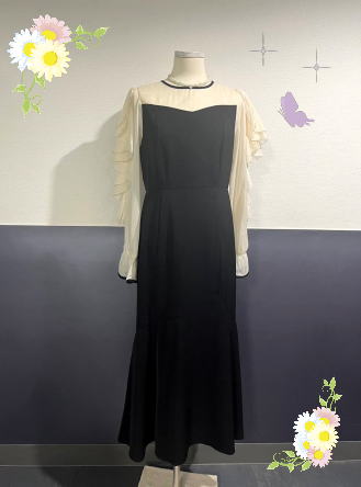 No.1 ■ ドレス D540 11号size ブラック おちついた印象のブラック×ベージュ☆ 袖がとってもかわいいです。 是非お試し下さい☆ |